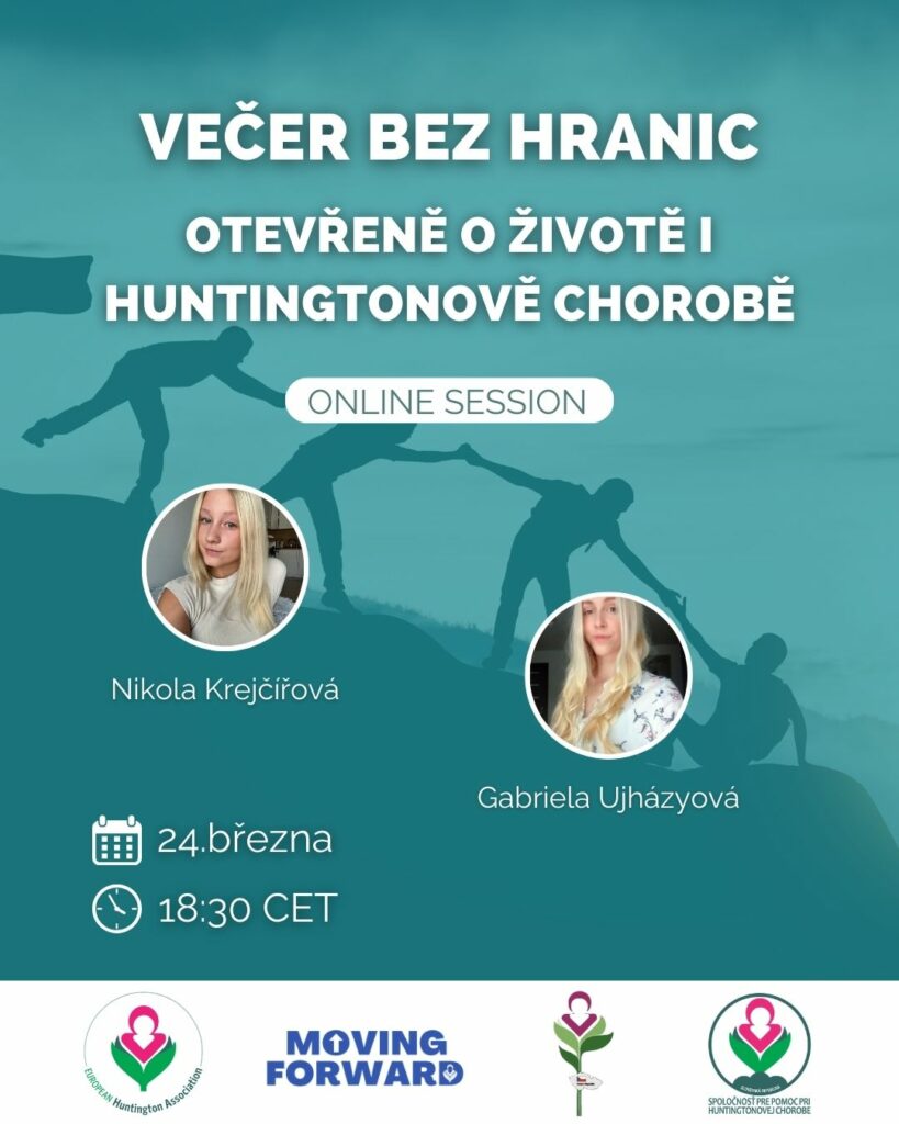 On March 24 at 6:30 PM, an online session titled Evening Without Borders took place, connecting people across the Czech Republic and Slovakia. In a warm and open atmosphere, 20 participants came together to share experiences, listen, and speak openly about life with Huntington’s disease.